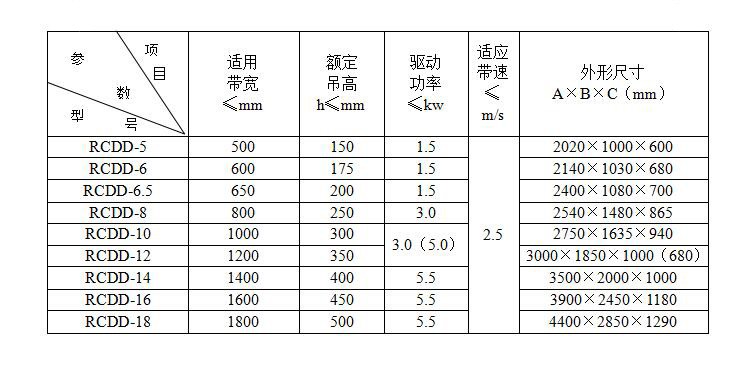 一般 S=R(+300/-200) 傾斜角度5°~15°左右額定吊高見技術(shù)參數(shù)表