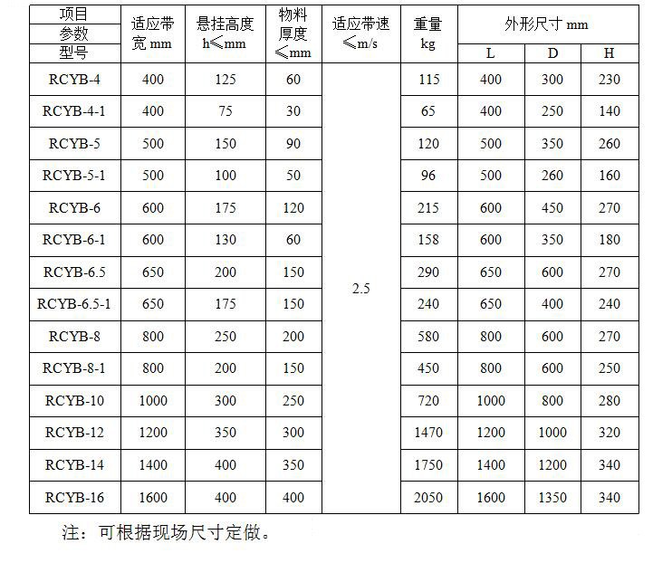 RCYB系列懸掛式永磁器與皮帶輸送機(jī)配套使用,主要用于清除皮帶輸送機(jī)上非磁性物料中所含的鐵雜質(zhì),該設(shè)備分別適用于400-1500mm寬的輸送皮帶,該設(shè)備具有安裝方便、無能耗、體積小、磁力大、除鐵干凈、使用壽命長等特點(diǎn),是破碎機(jī)、磨機(jī)、包裝機(jī)等理想的保護(hù)設(shè)備。在水泥、玻璃、煤礦、陶瓷、電力、食品等行業(yè)得到廣泛的應(yīng)用。