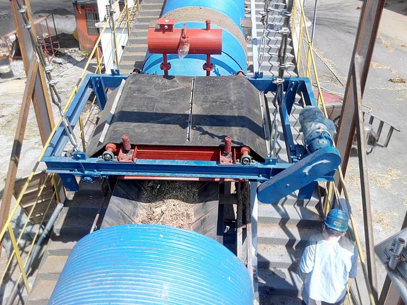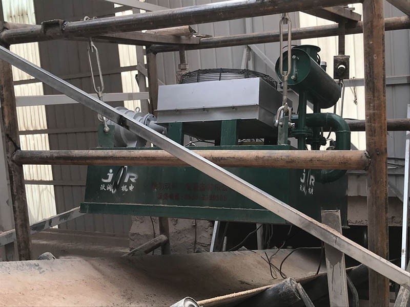 當(dāng)輸送的物料經(jīng)過通入直流電的勵磁線圈下方時,具有強(qiáng)磁場的磁極便把混在物料中的鐵磁性物質(zhì),不斷吸起,從而達(dá)到除鐵目的。