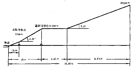 B1  運(yùn)輸機(jī)按遠(yuǎn)、近距導(dǎo)航臺(tái)進(jìn)場(chǎng)著陸時(shí)的下滑線(下圖)。