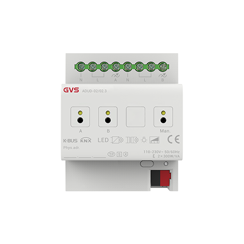 1/2/4 路通用調光執(zhí)行器(以下簡稱調光器)根據產品有 1/2/4 路輸出,可連接一些具有可調光性能的燈光設備(如白熾燈、鹵素燈、節(jié)能燈、LED 燈等),通過總線可以對這些燈光設備進行調光、場景預設、開關燈等操作,同時也支持 KNX 安全協(xié)議。采用導軌式安裝的調光器設計安裝在 35 毫米 DIN 導軌上的模數化設備,輸出端采用螺絲接線柱實現電氣連接。調光器的總線連接都是直接通過 KNX 接線端子連接,系統(tǒng)供電除總線外不需要額外的電源電壓。