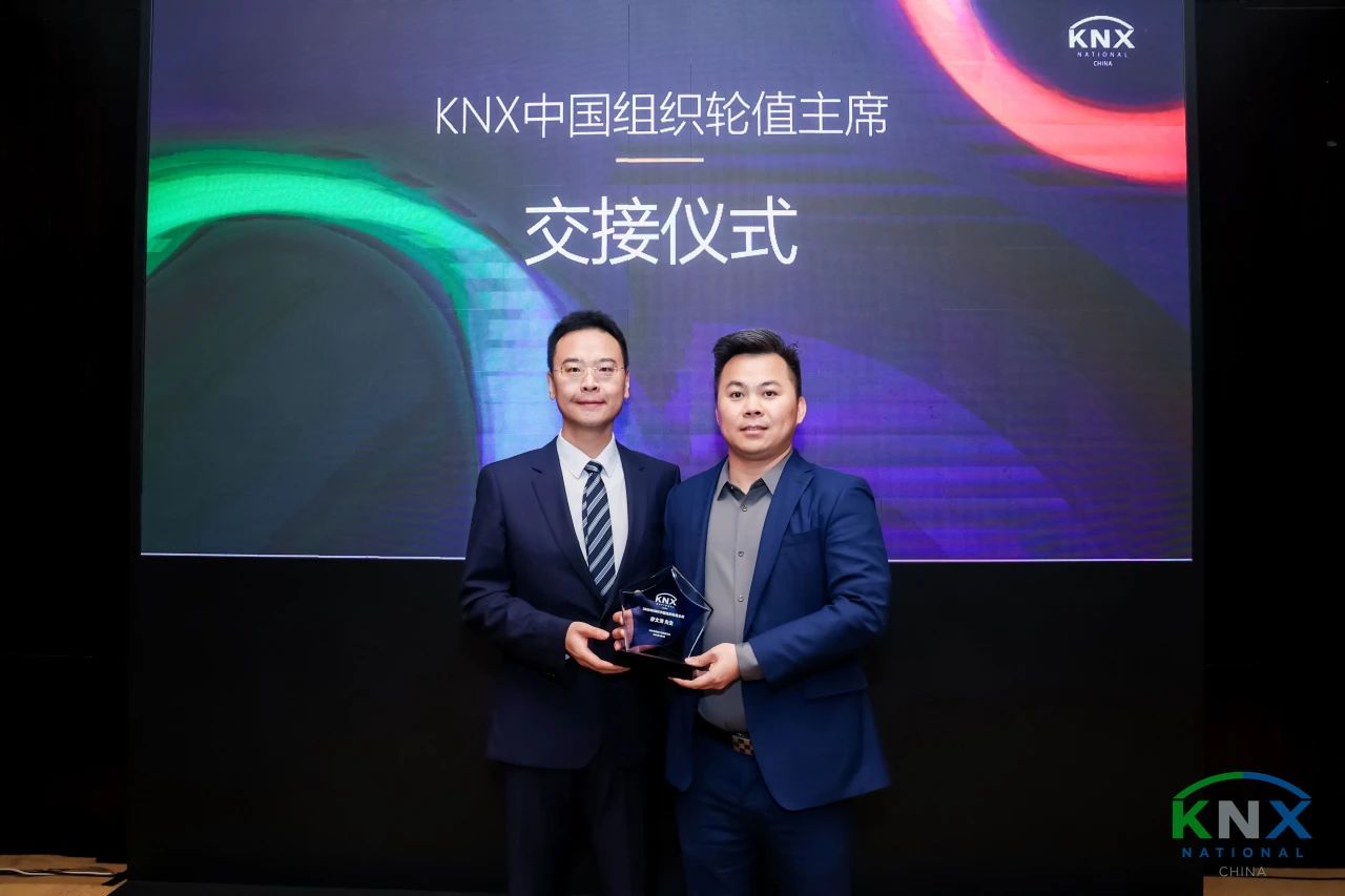 特別地,會上完成了KNX中國組織新舊輪值主席的交接儀式,宣布KNX中國組織新一任(2025年)輪值主席由廣州視聲智能股份有限公司智能控制事業(yè)部總經(jīng)理廖文濤先生正式擔(dān)任