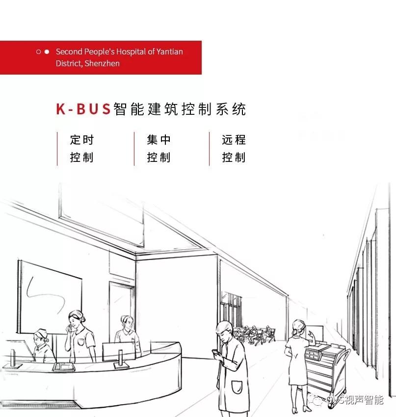 針對(duì)此情況,GVS視聲為深圳市鹽田區(qū)第二人民醫(yī)院提供K-BUS智能建筑控制系統(tǒng),該系統(tǒng)基于KNX國(guó)際標(biāo)準(zhǔn),具備高穩(wěn)定性、高兼容性和高開放性,操作容易,安全系數(shù)高,備受院方認(rèn)可。