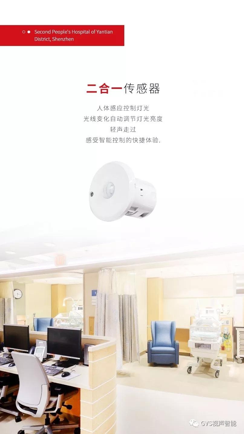 GVS視聲,一直堅(jiān)持以人的需求為核心,因此,在為醫(yī)院進(jìn)行解決方案定制的時(shí)候,也充分以人為本,將病人的感受考慮進(jìn)去。比如,為防止病患間通過觸摸開關(guān)等形式交叉感染,給醫(yī)患雙方營(yíng)造舒適的公共環(huán)境,GVS視聲給項(xiàng)目搭載二合一傳感器。