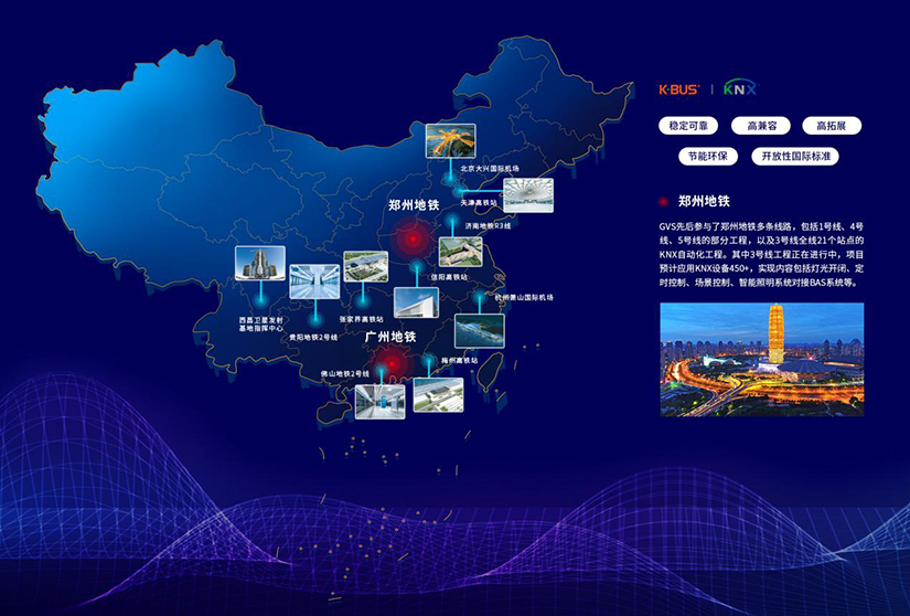 目前,GVS以K-BUS智能照明控制系統(tǒng)先后賦能廣州、鄭州、濟(jì)南、梅州、貴陽(yáng)、佛山等各大城市的軌道交通項(xiàng)目,亦憑廣州地鐵21號(hào)線提名2020 KNX協(xié)會(huì)「公共工程獎(jiǎng)」。